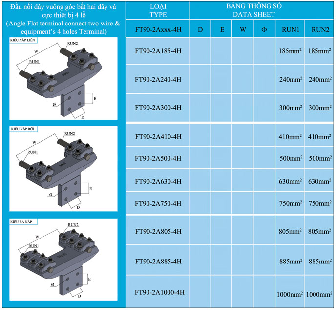 Đầu nối dây vuông góc bắt 1 dây và cực thiết bị 2 lỗ nắp liền